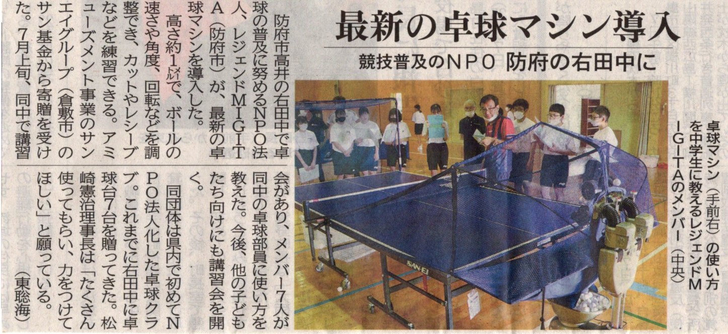 中国新聞に当法人が開催した[卓球マシン使い方講習会]の様子が紹介されました