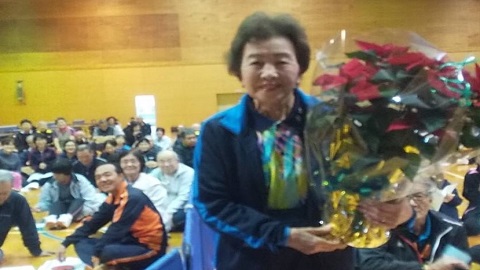 開会式では、防府アタッカーズの吉末澄子さんが本年7月5日(金)~2019年7月7日(日)に富山県で開催された「第2回全日本ラージボール卓球選手権大会」の女子シングルス85歳以上の部で見事優勝されましたので当法人として表彰をさせていただきました。また、本大会におきましても、Bクラスで実力を遺憾なく発揮され見事準優勝されました。今後の更なるご活躍をお祈りいたします。