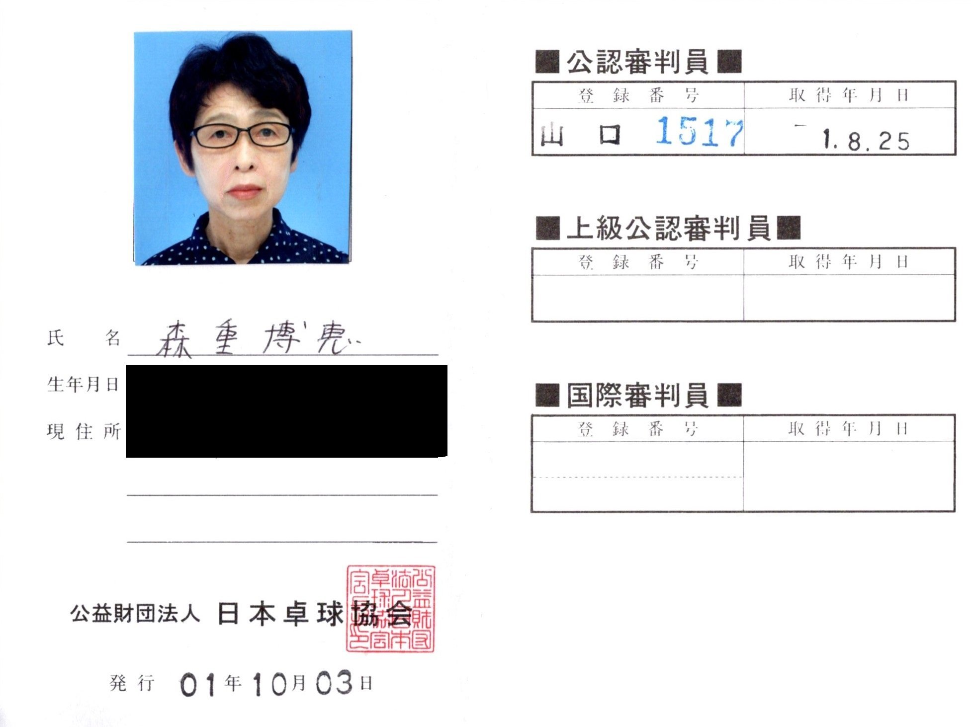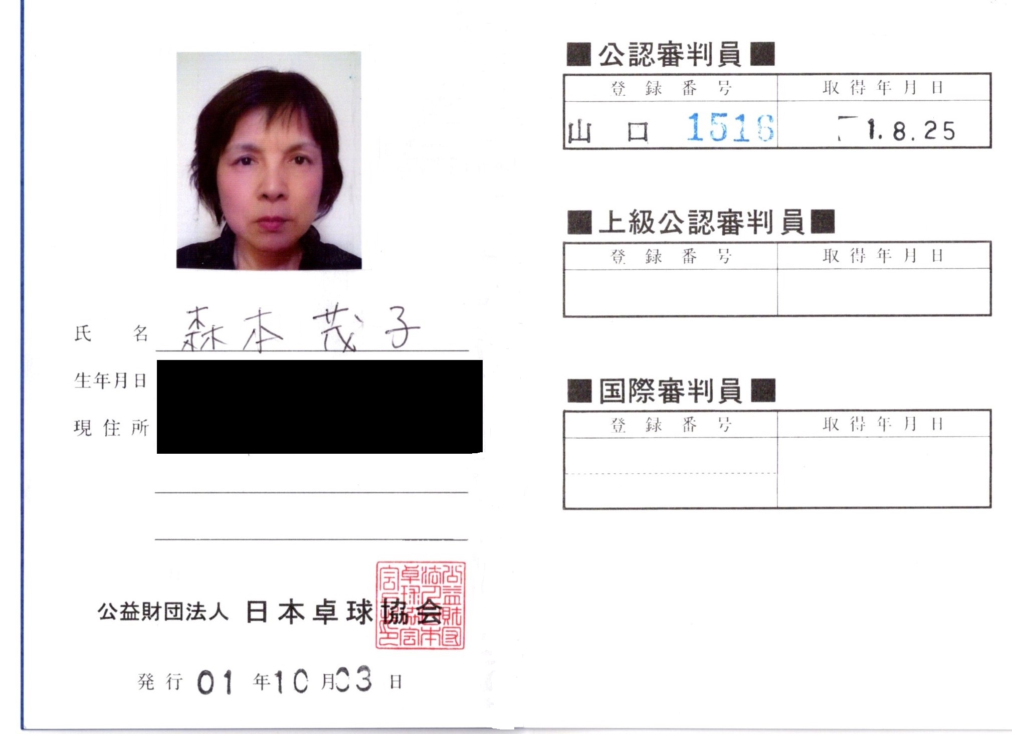 | 森本 茂子 | 山口1516 | 令和 1 年 8月25日 | |