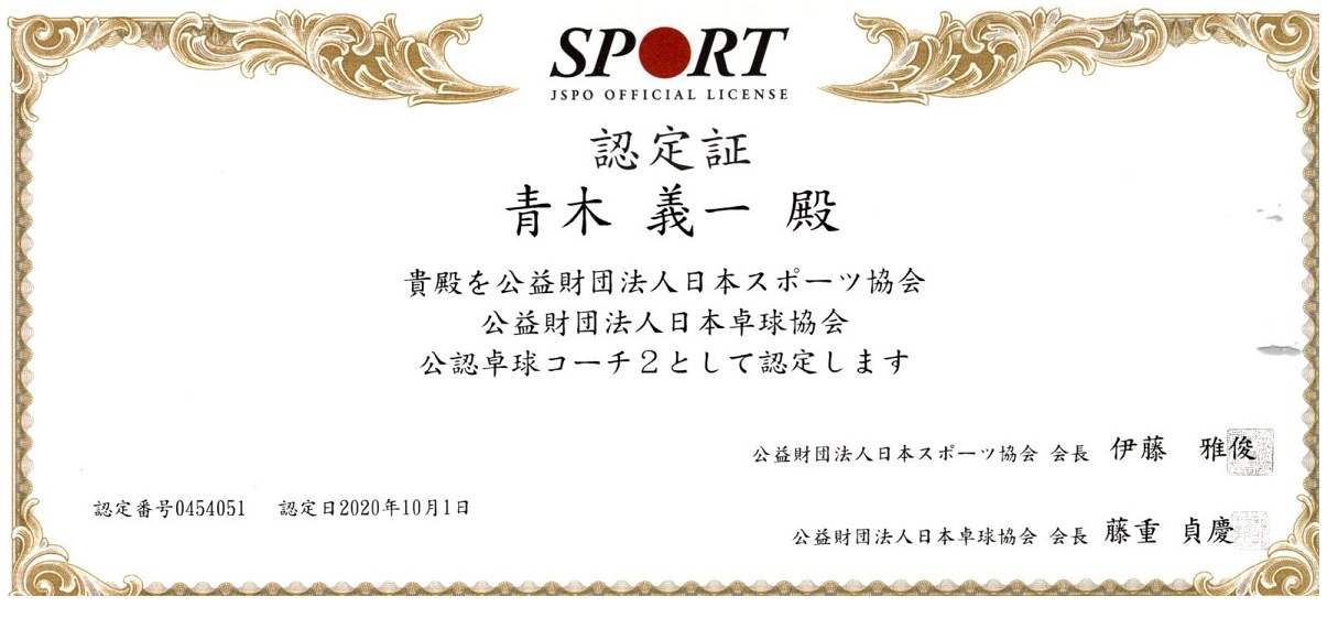 公認卓球コーチ
